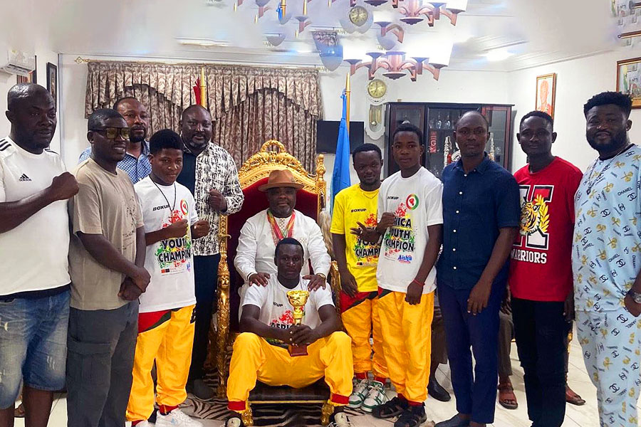 They presented their gold medals and 3rd place trophy won at the 2025 African Youth Boxing Championship to the Sempe Mantse Nii Adote Otintor II an impressive ceremony at his palace in Accra.